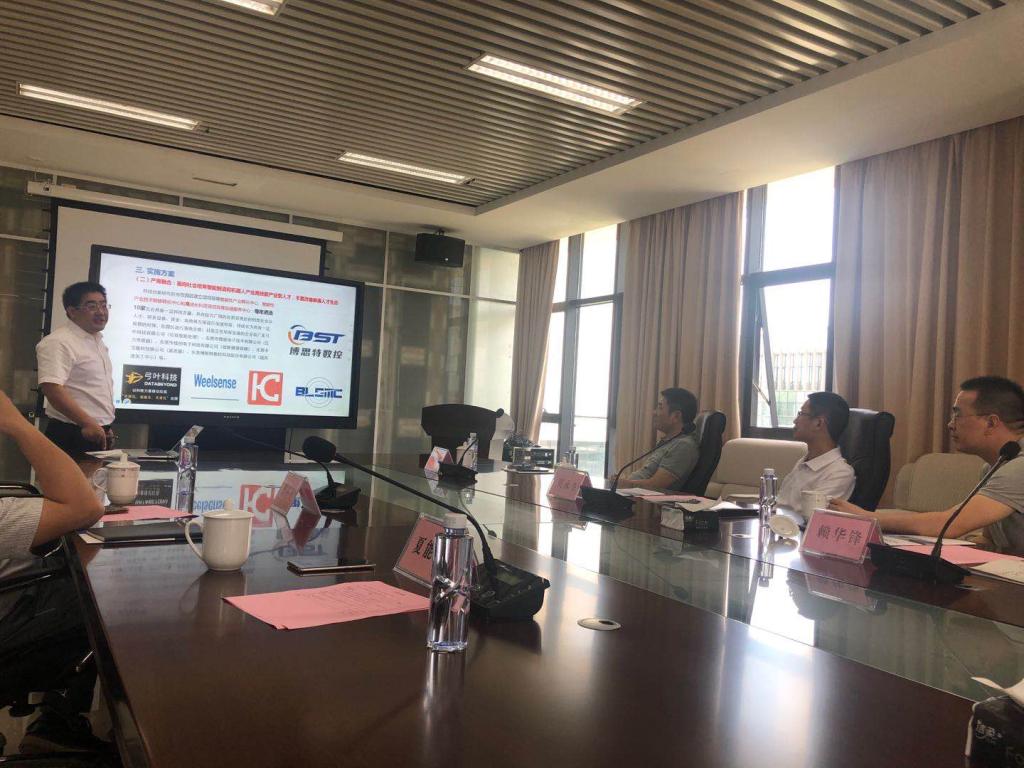 随后,双方在大学创新城D2栋5楼会议室进行了座谈,夏能礼副院长向来宾详细介绍了研究院的建设背景及发展现状、科技创新模式、科技业务体系、研究院与麻涌镇合作产业的设想,并提出产教、产研、产育、引育融合,面向社会培育智能制造和机器人产业高技能产业型人才,构建智能性产业链生态圈,可以更好的为麻涌镇企业提供科技创新和产业化服务。赖华锋委员对科技创新研究院给予极高的评价,并期待在后续能够以科技创新研究院为平台,推动当地产业发展;与研究院在人才培养、智能制造、技术创新等方向展开系列合作。