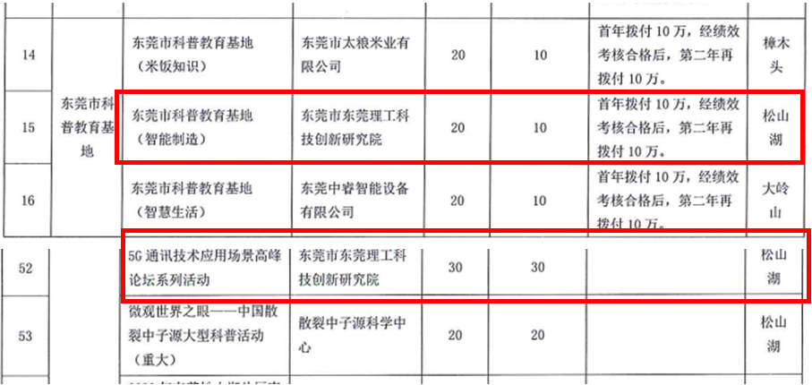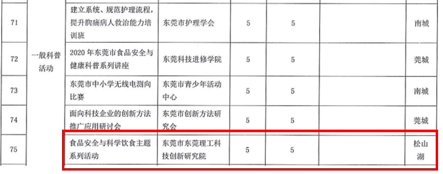 8月17日,东莞市科学技术协会发布了《关于下达2020年度东莞市科普和学会科技服务项目资助计划的通知》。科技创新研究院共申报项目3项,3项项目全部入选资助计划,获批资助经费总额55万元。其中我单位获批为东莞市科普教育基地(智能制造),资助金额20万元;“5G通讯技术应用场景高峰论坛系列活动”获批重大科普活动项目,资助金额30万元;“食品安全与科学饮食主题系列活动”获批一般科普活动项目,资助金额5万元。