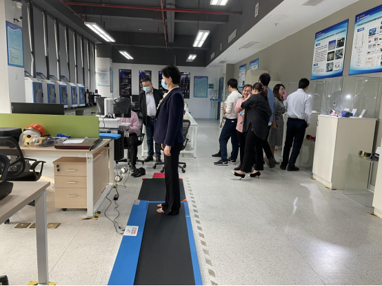 首先,我院陈盛贵高工带领专家们参观3D打印与智能制造研究中心,实地了解平台科研工作情况,并体验我院足底压力测试系统及医学VR虚拟教学平台。