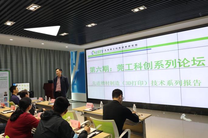 本期活动由3D打印与智能制造研究中心承办,陈盛贵高工主持本次活动,活动主讲嘉宾为广东工业大学刘晓暄教授、聂光临博士和黄民忠博士。来自松山湖国际创新创业社区各科研单位、东莞理工学院各二级学院以及科技创新研究院各平台的师生共50余人参加了本次论坛活动。