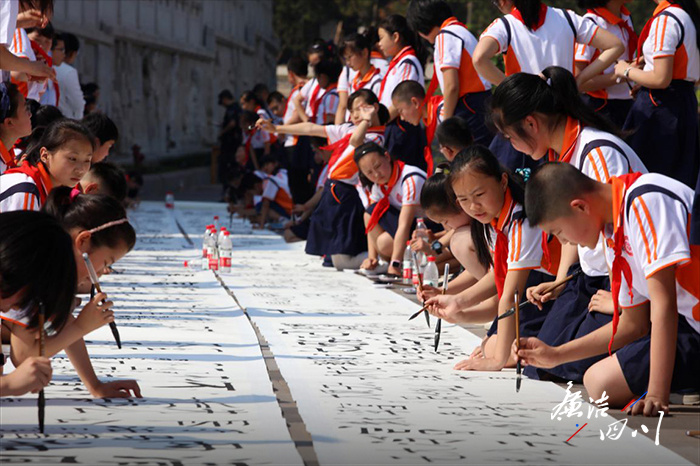 “丹青扬正气·翰墨传家风”廉洁文化进校园暨遂潼师生百米书法长卷现场创作活动来到遂宁船山区新盐市街小学,书法家、师生代表集体挥毫泼墨,共“书”廉洁。遂宁船山区教育和体育局党委委员刘平说:“活动把‘清清白白做人,干干净净做事’的廉洁文化,写进了学生的心里,助推了廉洁文化进学校。”