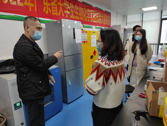 在检查过程中,检查组对实验室的隐患进行逐一排查,清点工作台账,重点检查水电安全、消防设备、压力容器、危险化学品、易燃易爆物品、危险废弃物、特种设备等情况,现场指导实验室安全生产要点。