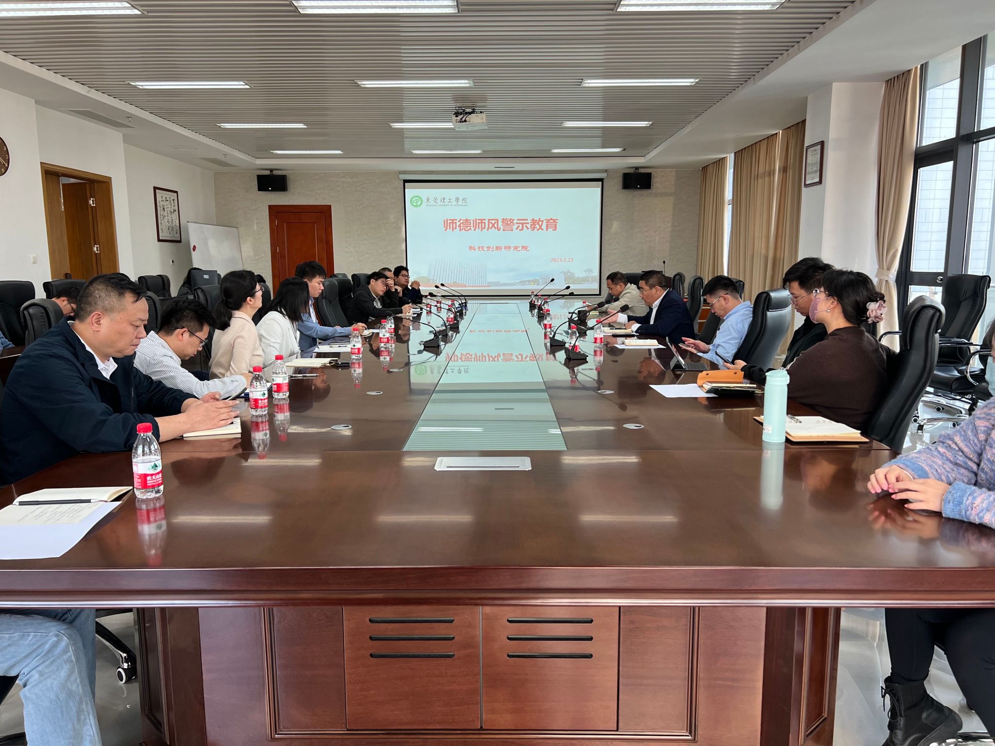 2月23日,科技创新研究院召开师德师风警示教育会议,学习传达上级文件精神,通报相关典型案例,进一步加强和改进师德师风建设。会议在松山湖国际创新创业社区D2栋502会议室举行,科技创新研究院领导班子、实验员、教职员工等30余人参会。