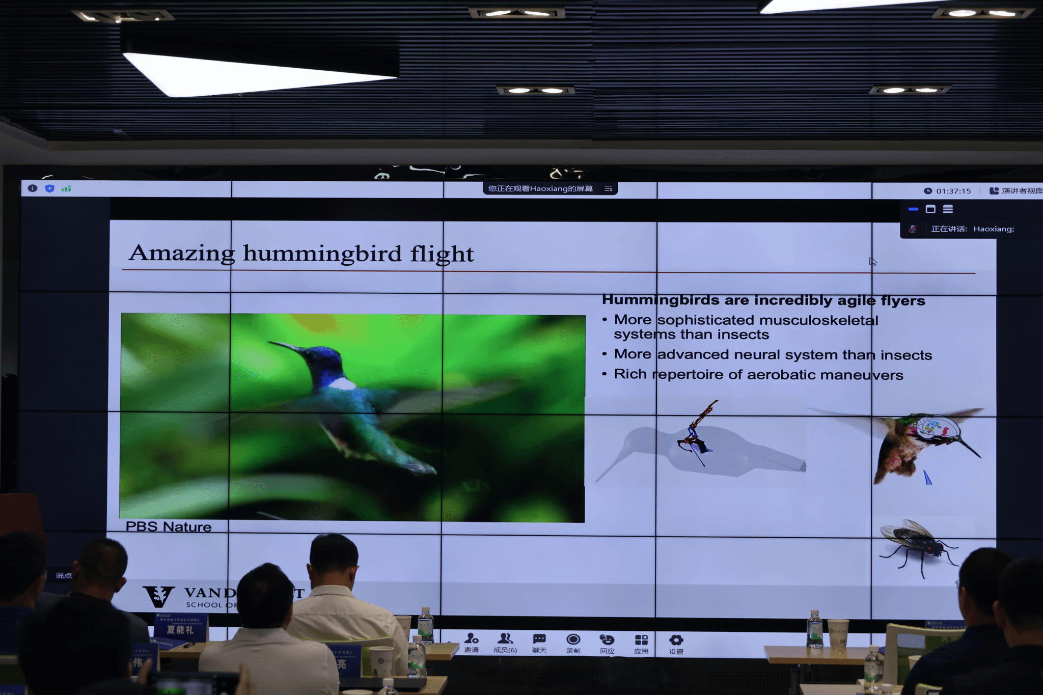 在学术报告环节,美国范德堡大学罗昊翔教授、香港理工大学唐辉副教授和马萨诸塞大学达特茅斯分校凌杭建助理教授在线上分享了关于蜂鸟飞行动力学、扑翼运动推进和能量俘获、以及水下系统超疏水表面的应用挑战的精彩报告。