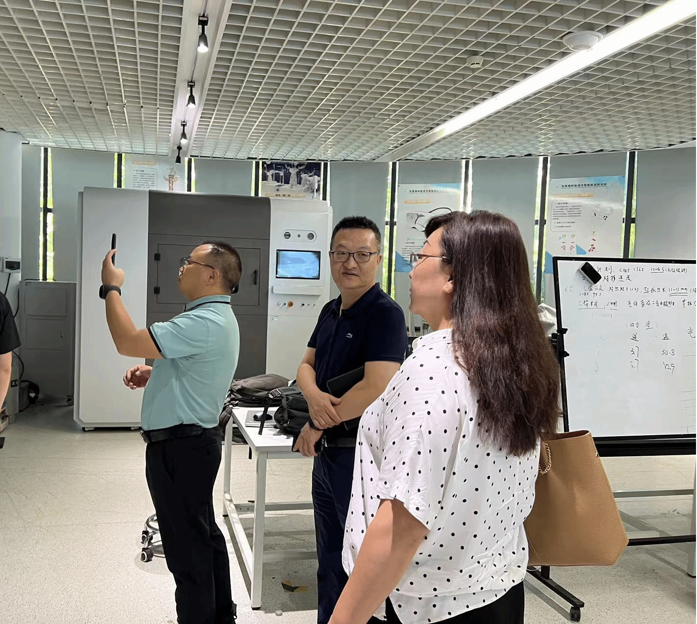 来宾们在3D打印与智能制造研究中心参观交流