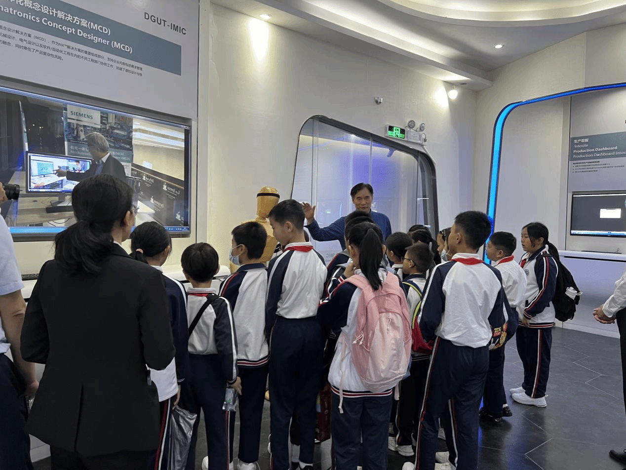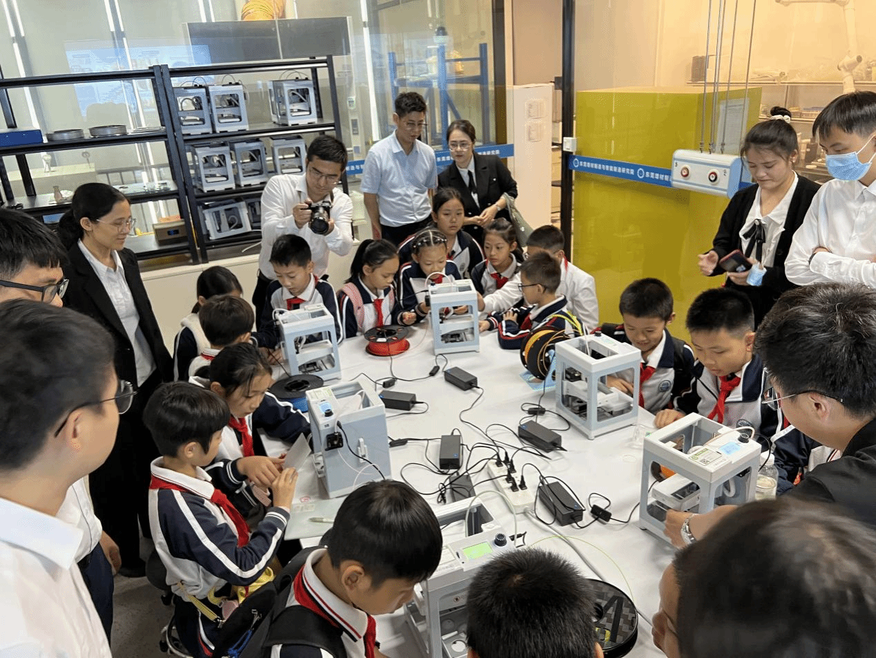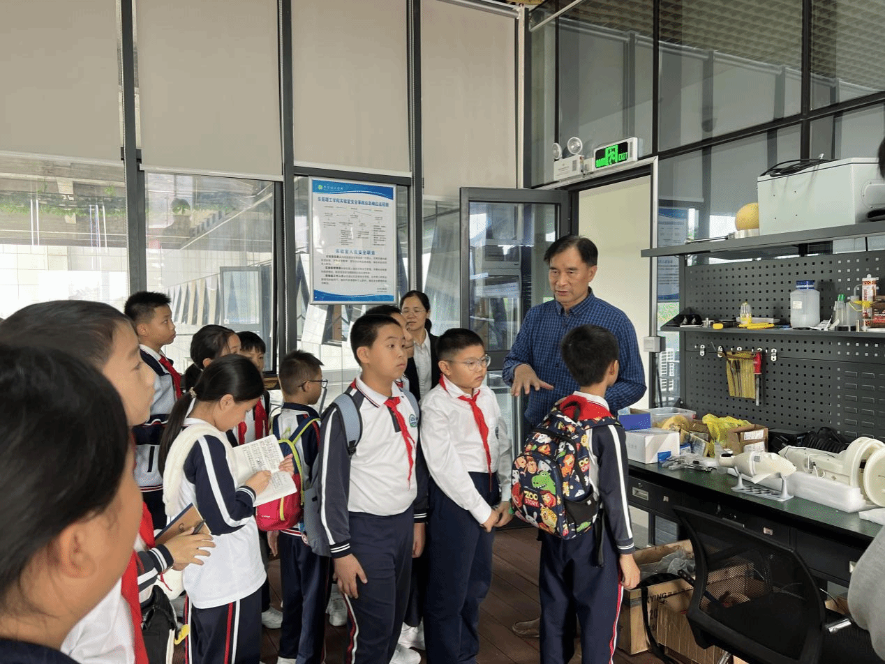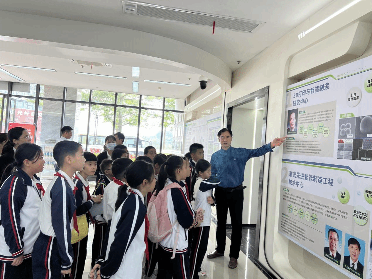 为了加深小学生对科学前沿的了解,开阔学生视野,提高学生综合能力,莞城英语学校教师组织学生于2023年12月14日来我院参观学习。学生们怀着对科学的热情,在老师的带领下参观了我院西门子智能制造创新中心、3D打印与智能制造研究中心、食品营养健康工程与智能化加工研究中心和仿生实验室,我院原院长周梓荣教授接待了来宾。
