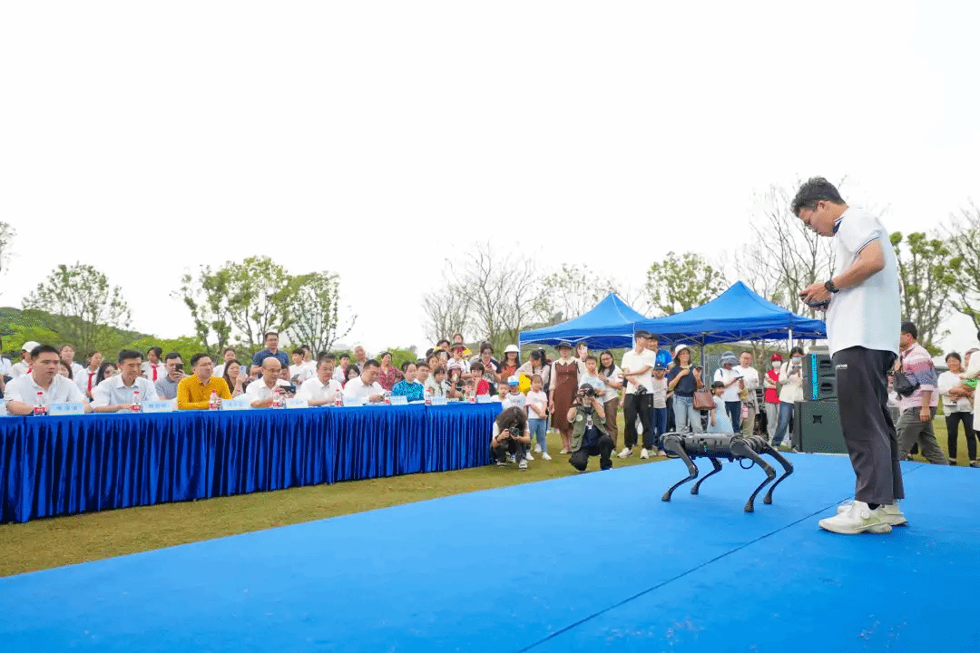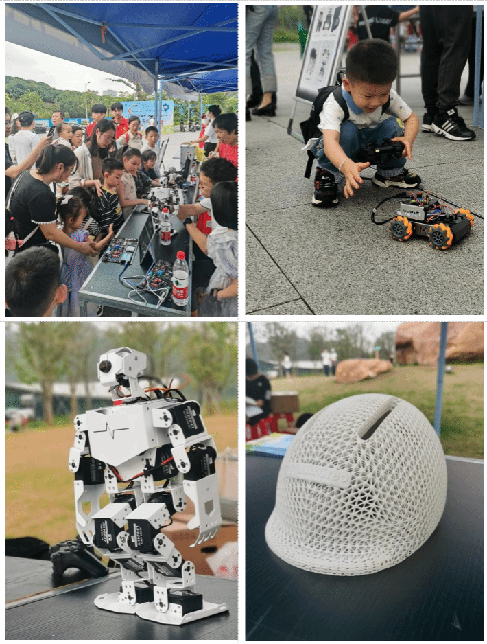 在启动仪式上,研究院展示了机器狗、人形机器人、智能小车、人体骨骼等十余种3D打印科创产品,通过生动有趣的互动形式,向家长和孩子们展现科学的无穷魅力。孩子们目不转睛地观看着各种科学实验和展示,不时发出惊叹和欢呼声。机器狗表演作为全场唯一在主舞台上亮相的暖场节目,更是瞬间点燃了现场热烈而欢快的气氛。