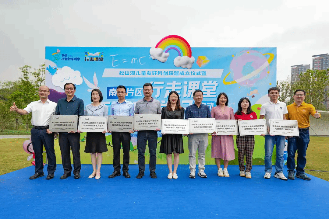 “行走课堂”环湖研学记项目启动仪式由松山湖南部片区党委、松山湖妇女联合会主办,松山湖宣传教育文体旅游局协办,松山湖管委会、南部片区党委领导以及四大片区党委代表,中国散裂中子源、松山湖材料实验室等松山湖儿童友好科创联盟成员单位代表以及南部片区学校各代表出席。松山湖南部片区党委主要负责人为参与研学的合作单位授予合作证书,标志着各方将携手共进,共同推动科普教育事业的发展。