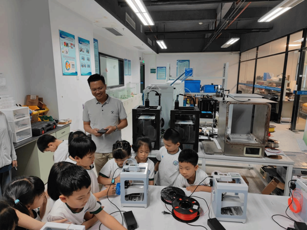 孩子们看着宣传栏里的科学研究及相关产业化技术成果展示,也滔滔不绝地讨论着对3D技术的看法,展现他们对3D智能制造的浓浓兴趣。