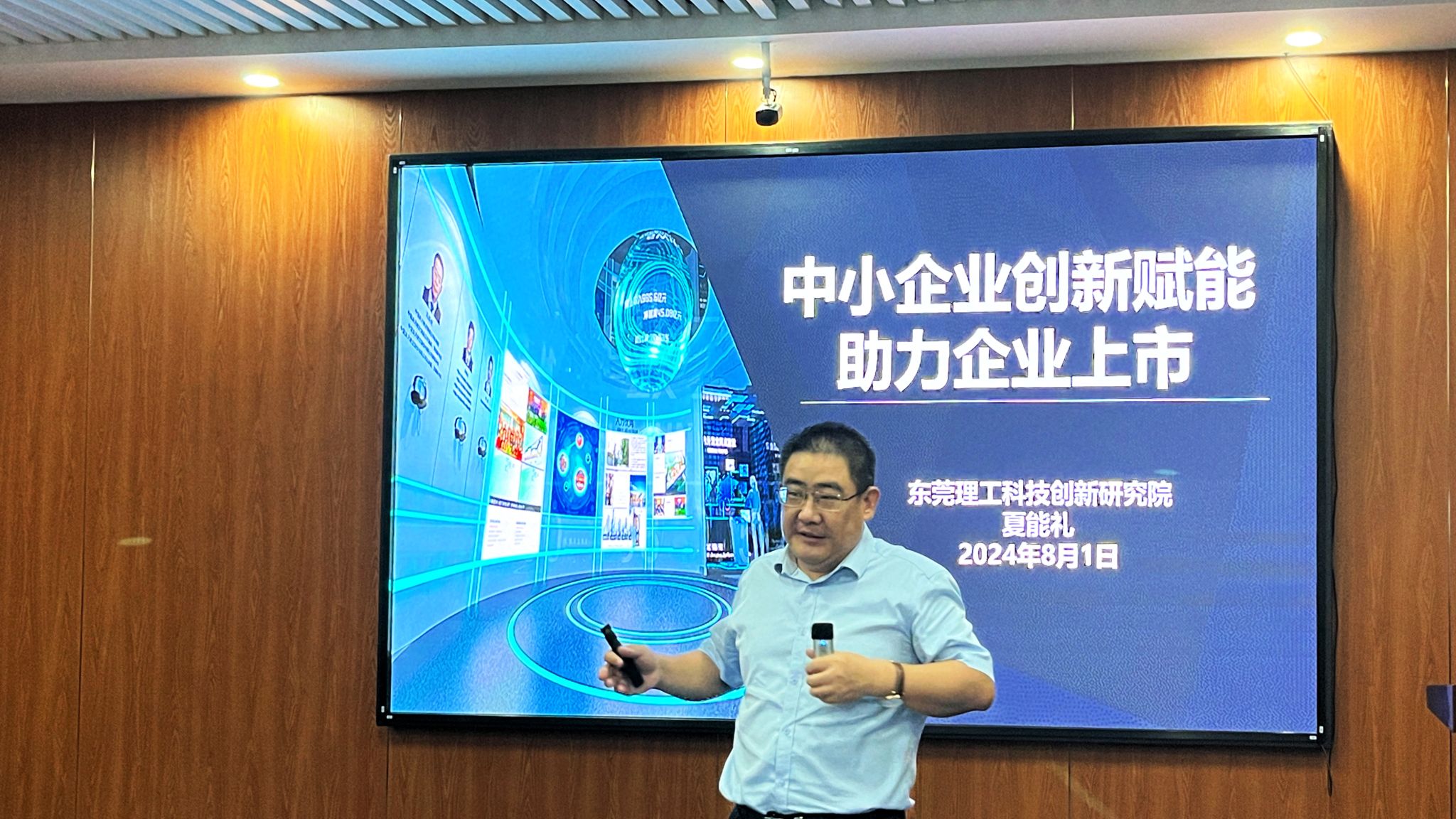 研究院院长夏能礼就“中小企业创新赋能助力企业上市”做主题演讲。随后由东莞证券执行董事、保荐代表人吕晓曙做“IPO注册制下最新审核政策”主题演讲分享。