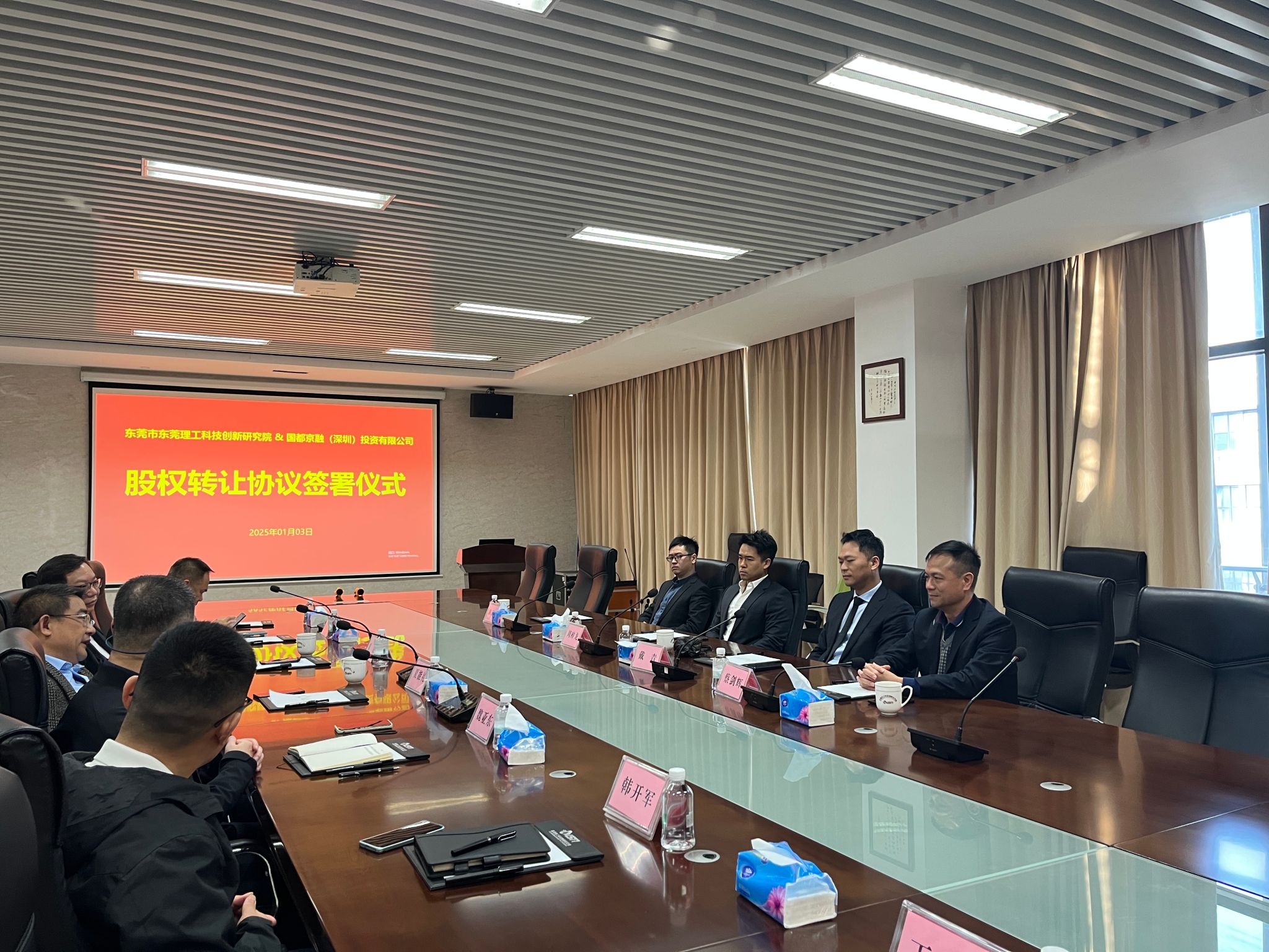 经过较长时间的沟通洽谈,我院与国都京融全体股东达成共识,由我院收购国都京融部分股份,作为基金公司第一大股东,与原有股东一起推动基金公司更好更快发展。此次合作预示着双方将携手整合科创与资本优势资源,共同打造东莞乃至大湾区最具有发展潜力的股权投资机构。