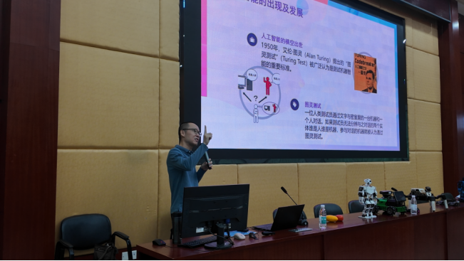 紧接着,胡天明教授从基础概念扩展到实际应用,介绍了人工智能在多个领域的真实场景:智能驾驶中,车辆如何识别道路、行人与信号灯;医疗影像中,如何借助 AI 提升病灶检测精度;工业机器人如何利用视觉算法实现精准作业。原本抽象的技术通过可视化讲解变得清晰易懂,学生对人工智能有了系统性的认识。