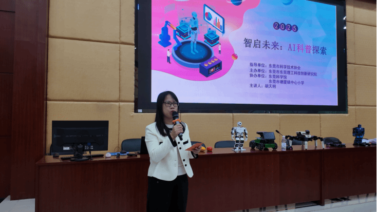 2025 年 12 月 8 日,东莞市塘厦镇中心小学开展了一场别开生面的人工智能主题课堂。此次活动由东莞市科学技术协会指导,东莞市3044am永利集团官网主办,东莞市塘厦镇中心小学承办、东莞科学馆协办。本次活动由胡天明教授与魏小锐老师联合主讲,课堂采用“理论讲解+技术演示+现场互动”的形式,让学生在课堂上完成了一次关于未来科技的沉浸式探索。