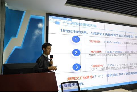 在参观环节后,研究院还邀请了曾达幸教授作了主题为:“并联机构发展现状及应用技术研究”的报告,报告介绍了仿生机器人的驱动结构及5G通讯技术在机器人领域中的应用。