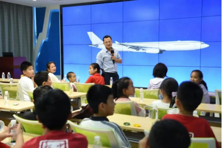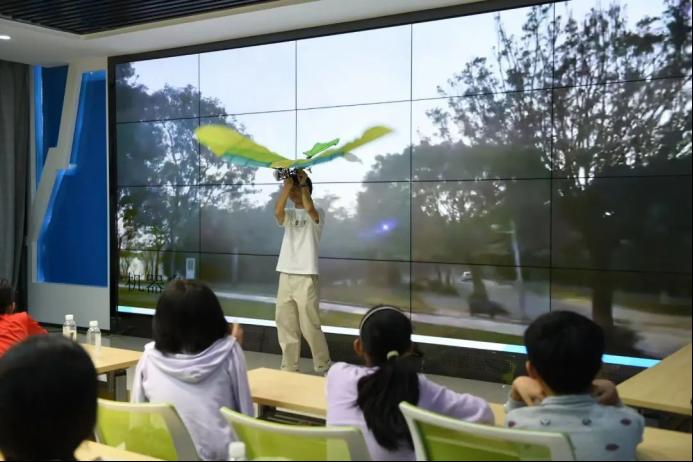 宋博士向孩子们展示了多款世界上先进的仿照鸟类和昆虫设计的飞行器,并强调飞机与鸟类的尺寸不同,飞机的设计不能盲目仿照鸟类。在尺寸较小时,飞鸟也好,昆虫也罢,都需要拍动翅膀才能飞行,而飞机的起飞是依靠机翼上面表面的压强差,仿生是模仿,是取其精华,并不是一昧的模仿。