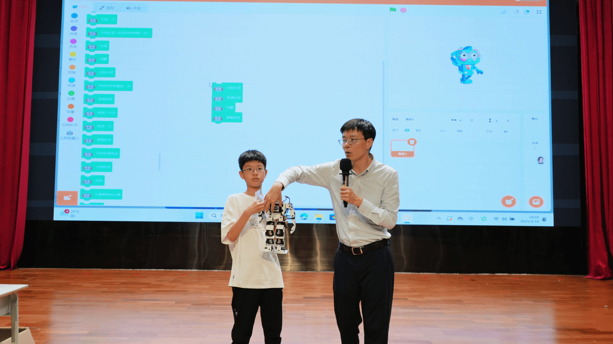 2025年4月18日下午,“人工智能科普进校园,共筑青少年科技强国梦”系列科普活动之:“人形机器人的编程实践”活动在东莞市大朗镇中心小学举行。