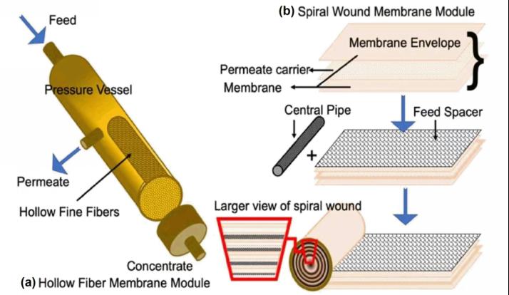中空纤维膜组件(b)SWM模块