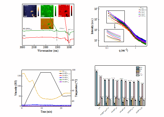 本研究通过在pH=2和不同加热时间条件下,诱导大豆分离蛋白自组装形成不同结构的纤维聚集体(SPFA),对SPFA的粒径分布、形貌特征和结构特性进行表征。系统研究了SPFA在“成核-聚集”过程中的聚集行为和在聚集过程中的结构变化规律,以及SPFA对马铃薯淀粉(PS)的结构、理化和消化性质的影响。