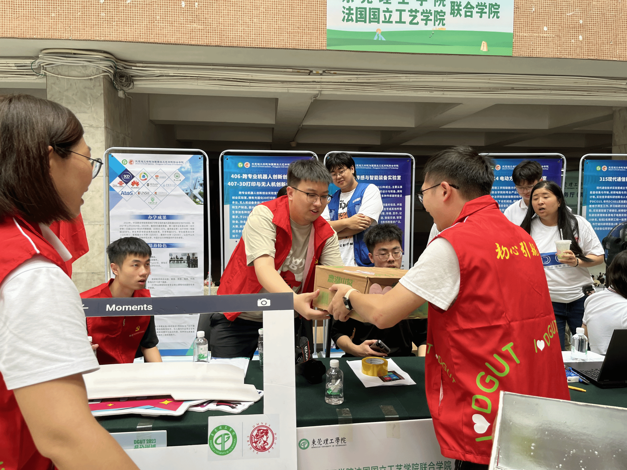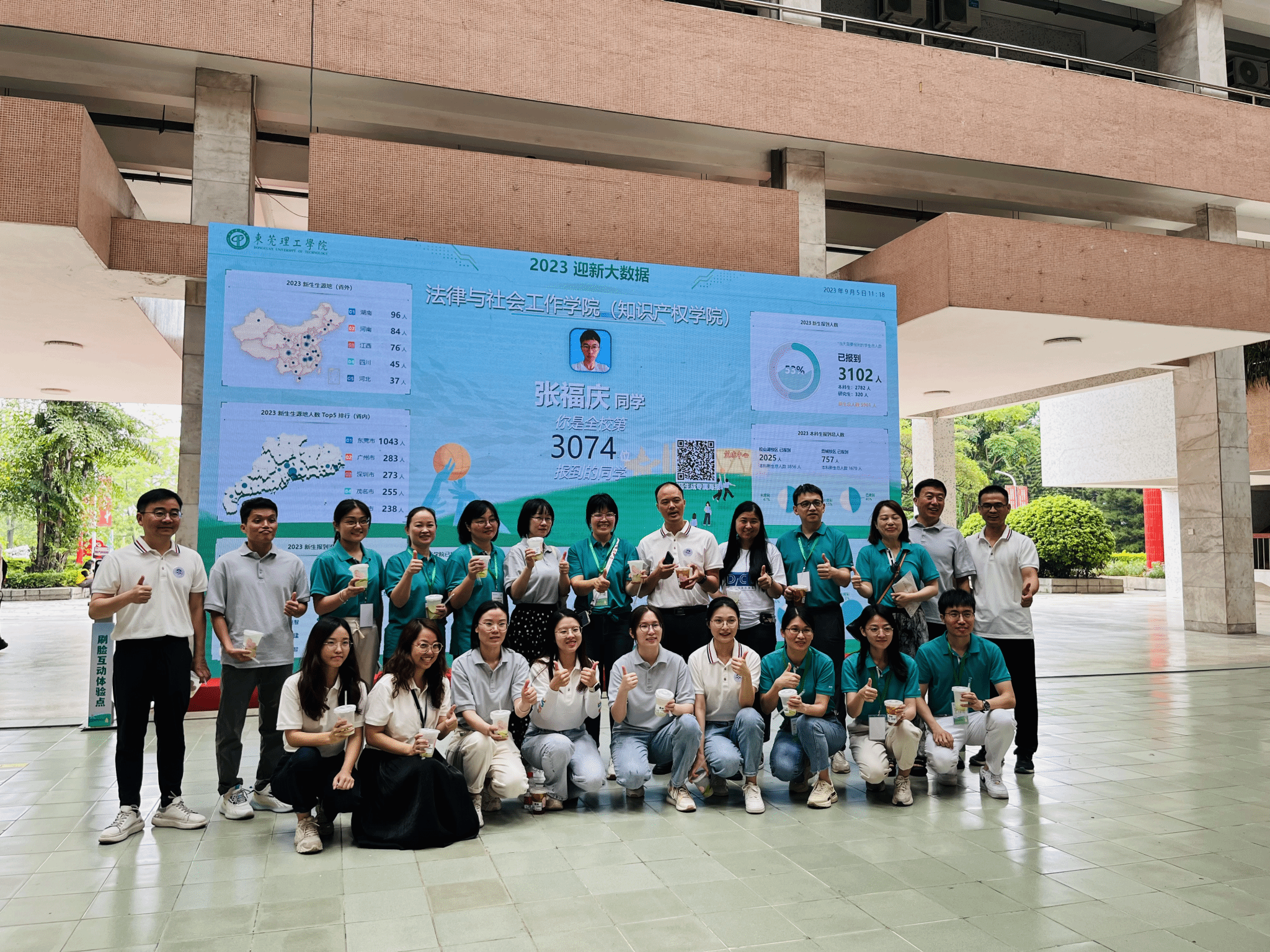 迎新当天,由资产公司党支部和科创院党支部党员、群众组成的志愿者兵分两路,分别前往松山湖校区体育馆和莞城校区4号大厅,为各二级学院、迎新服务点送上一份独属“资产经营公司和科创院”的味道及清凉。
