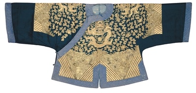 清代石青色金丝织锦龙褂。民族文化宫 供图